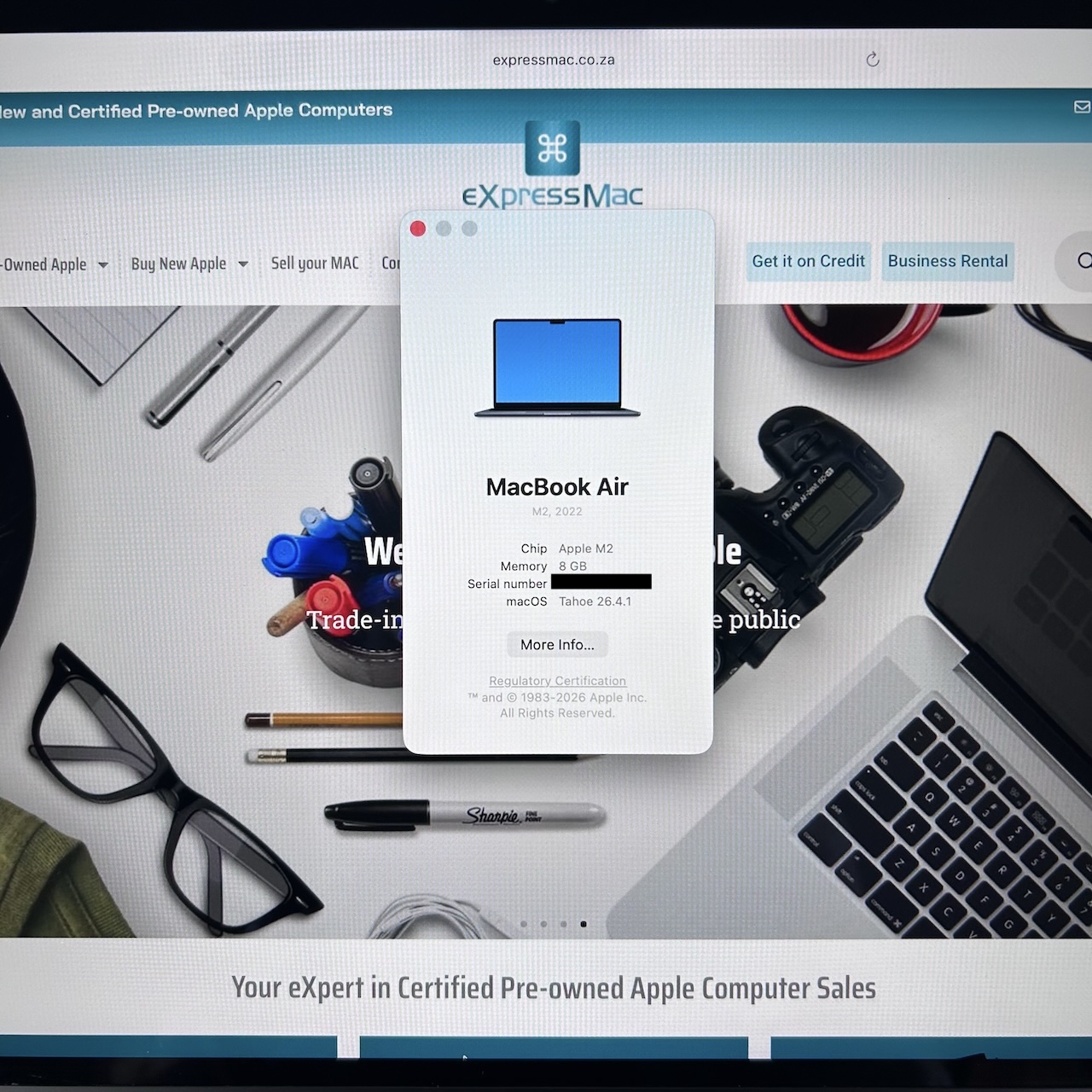 Meet the beautifully redesigned MacBook Air (2022) powered by Apple’s M2 chip. With an 8-core CPU, 8-core GPU and 16-core Neural Engine, everyday tasks feel instant and creative workflows stay fluid—all in a uniformly thin, 1.24 kg aluminium body that slips easily into any bag. The 13.6-inch Liquid Retina display brings photos, videos and text to life with 500 nits brightness, P3 wide colour and True Tone. A quiet, fan-less design keeps things cool and distraction-free, while the four-speaker sound system and 1080p FaceTime HD camera make calls and content look and sound great. Touch ID, the backlit Magic Keyboard and a large Force Touch trackpad round out a premium, effortless experience.