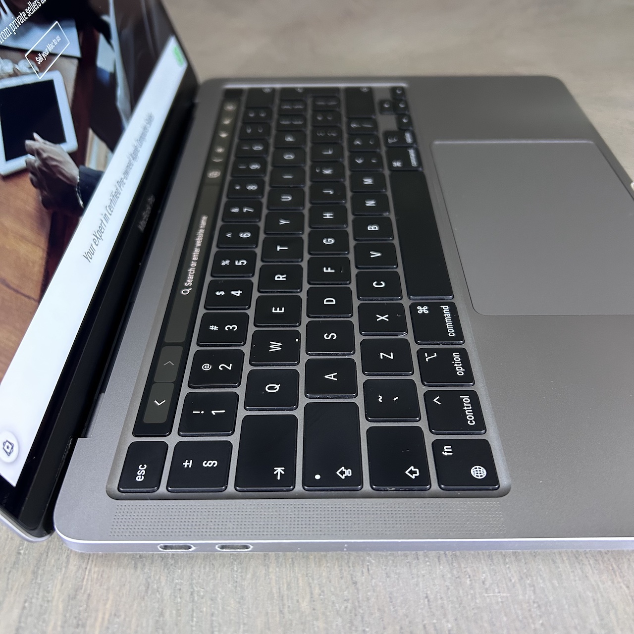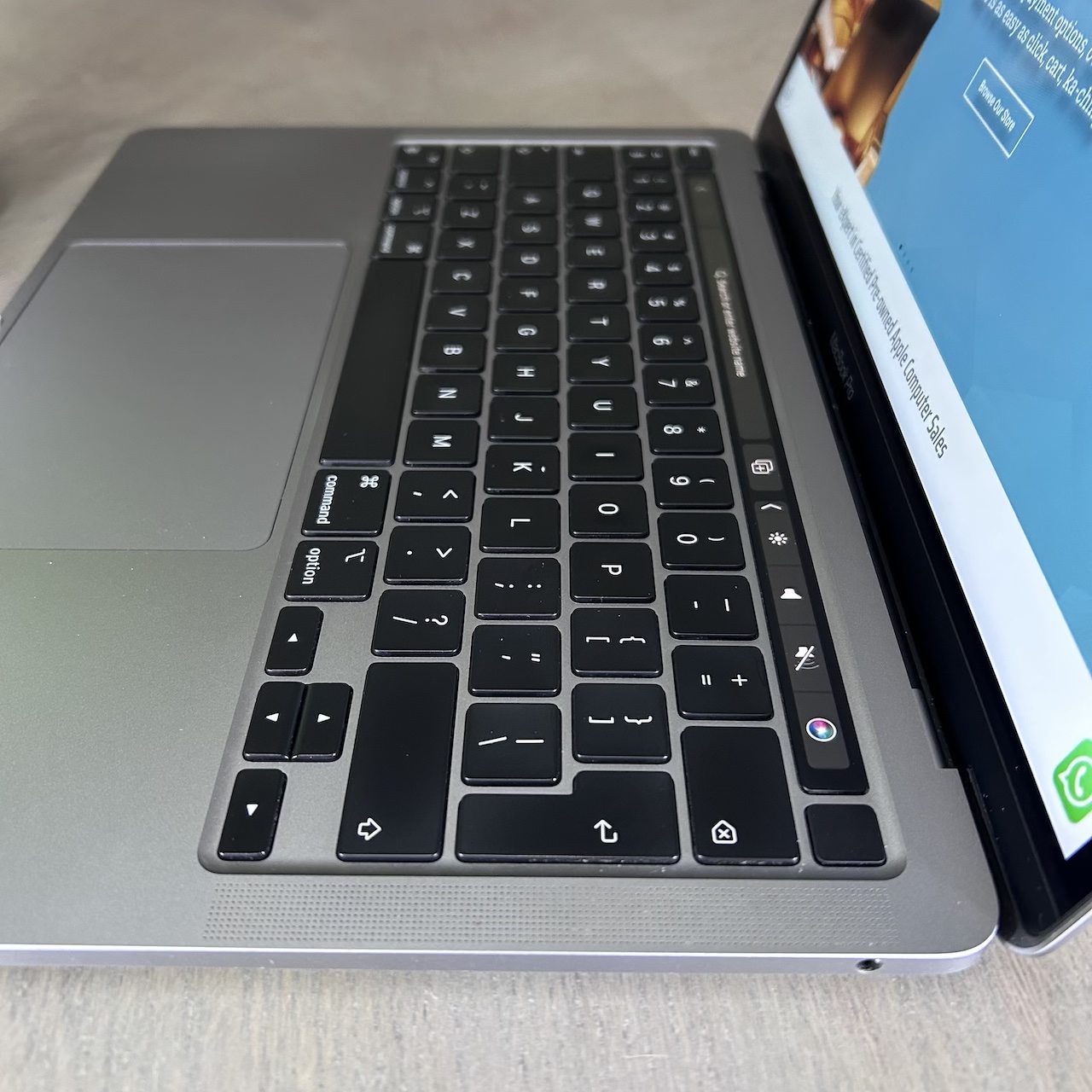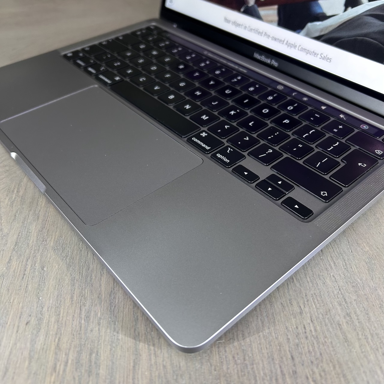 Grade A+ Certified Pre-owned 13-inch MacBook Pro M1 Touch Bar, 16GB of RAM for multitasking and a larger 512GB SSD Storage in great overall condition with excellent battery life!