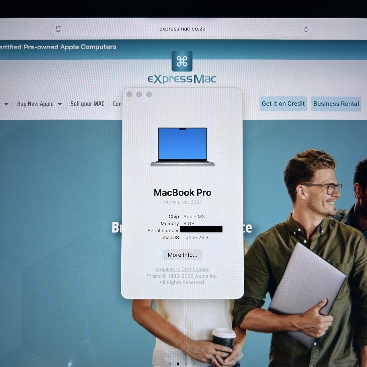 MacBook Pro 14-inch M3 8-Core CPU, 10-Core GPU-8GB RAM-512GB SSD (2023)- Silver- Grade A Certified Pre-owned (Low Cycle Count)