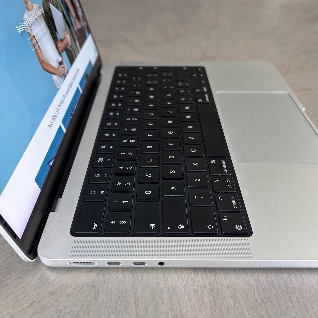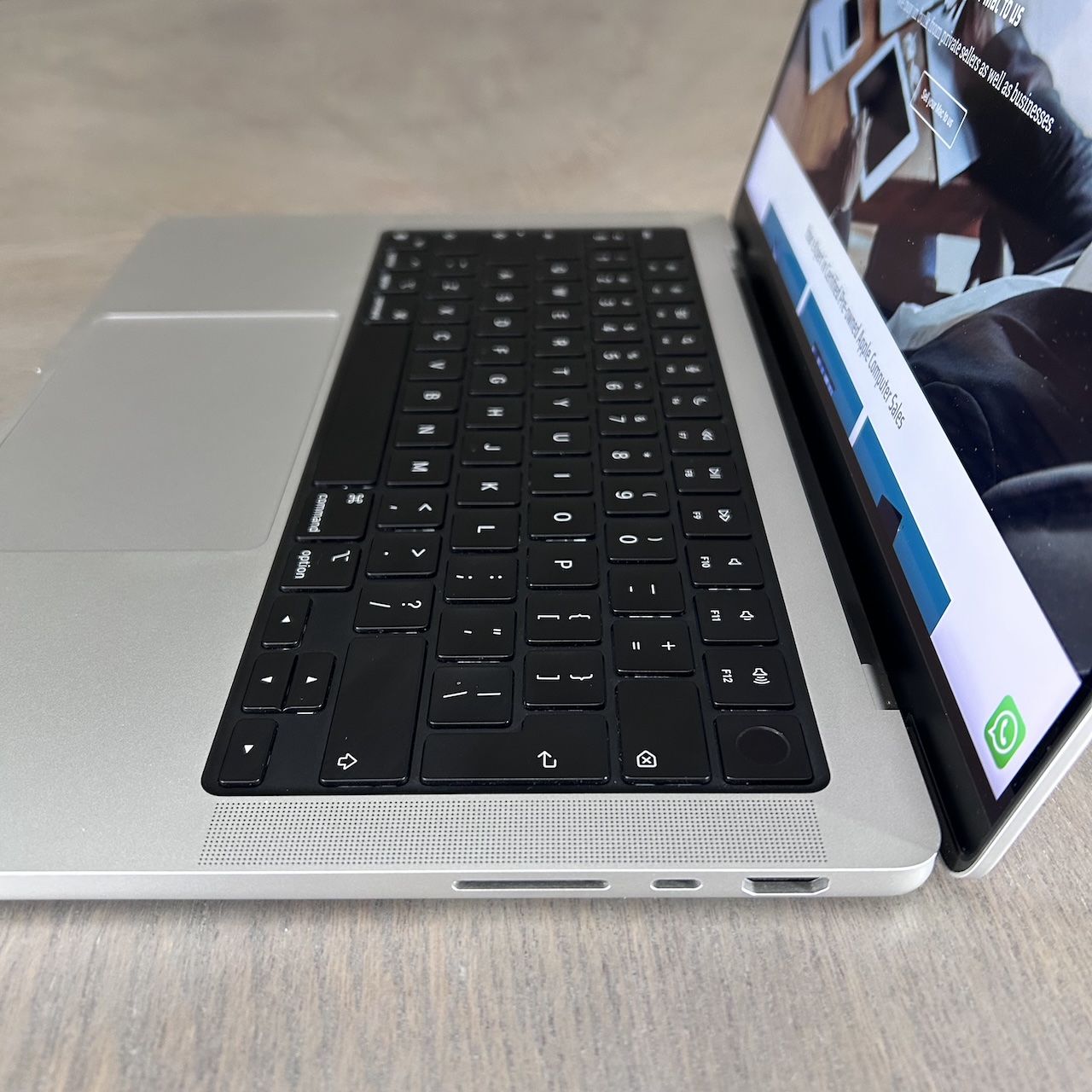 The 14.2″ Liquid Retina XDR display (3024×1964, 254 ppi) brings lifelike detail with up to 1000 nits sustained brightness (HDR), 1600 nits peak HDR, 600 nits SDR, and a 1,000,000:1 contrast ratio. A six-speaker sound system with force-cancelling woofers, a 1080p FaceTime HD camera, and studio-quality mics make calls and content creation look and sound first-class. Magic Keyboard with Touch ID and a spacious Force Touch trackpad keep you comfortable and secure all day.