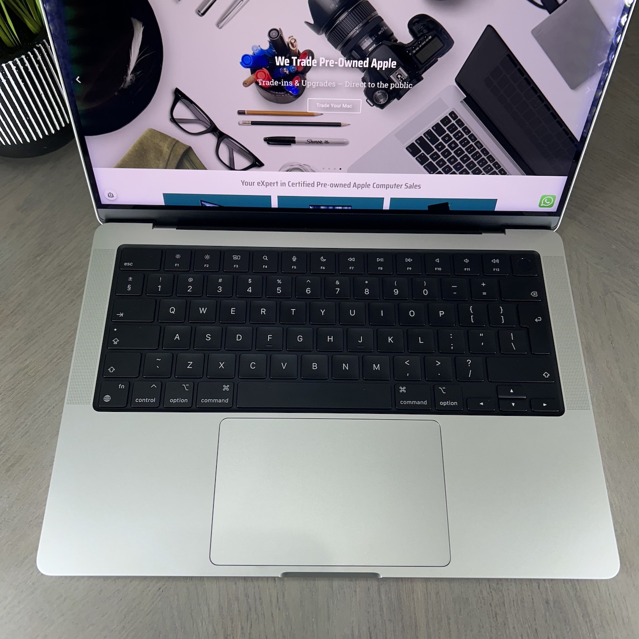 MacBook Pro 14-inch M4 10-Core CPU, 10-Core GPU – 16GB RAM – 512GB SSD (2024) – Silver – Grade A+ Certified Pre-owned (Low Battery Cycle Count)