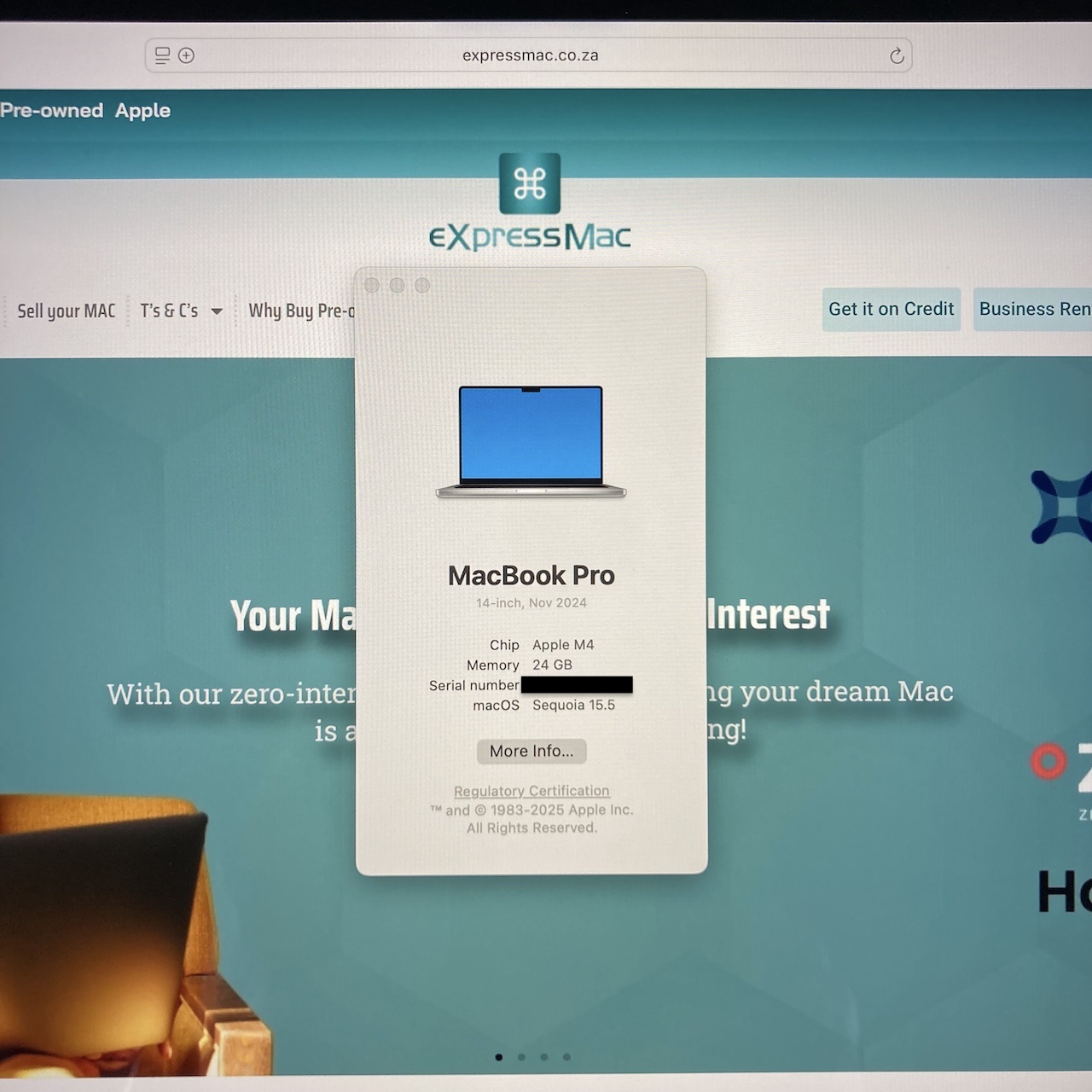 MacBook Pro 14-inch M4 10-Core CPU, 10-Core GPU – 24GB RAM – 1TB SSD (2024) – Silver – Grade A+ Certified Pre-owned (Demo unit, Mint Condition!)